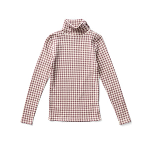 SNAP TURTLENECK- GINGHAM PRINT, CHERRY